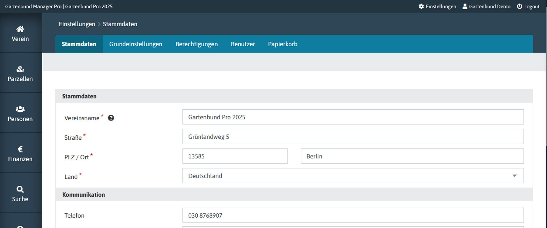 Um die grundlegenden Informationen des Vereins aktuell zu halten, kann man die Stammdaten ganz einfach wie folgt anpassen: