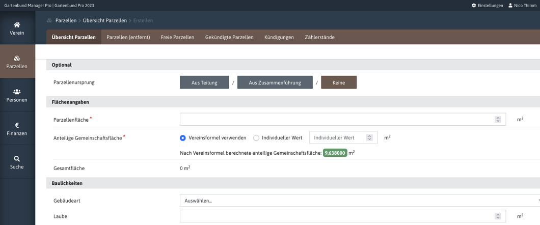 Parzellen > Übersicht Parzellen > Parzelle hinzufügen